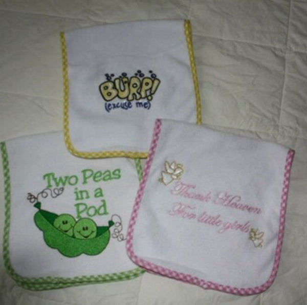Our Embroidered Burp Cloth Set of 3 offers parents a practical and stylish solution to messy spills and spit-ups. Each burp cloth is made with soft and absorbent materials, providing maximum coverage and protection for your baby. With three different embroidery designs, this set offers variety and versatility for parents on-the-go. Perfect for a gift or for your own baby, our Embroidered Burp Cloth Set of 3 is a must-have accessory for any new parent.